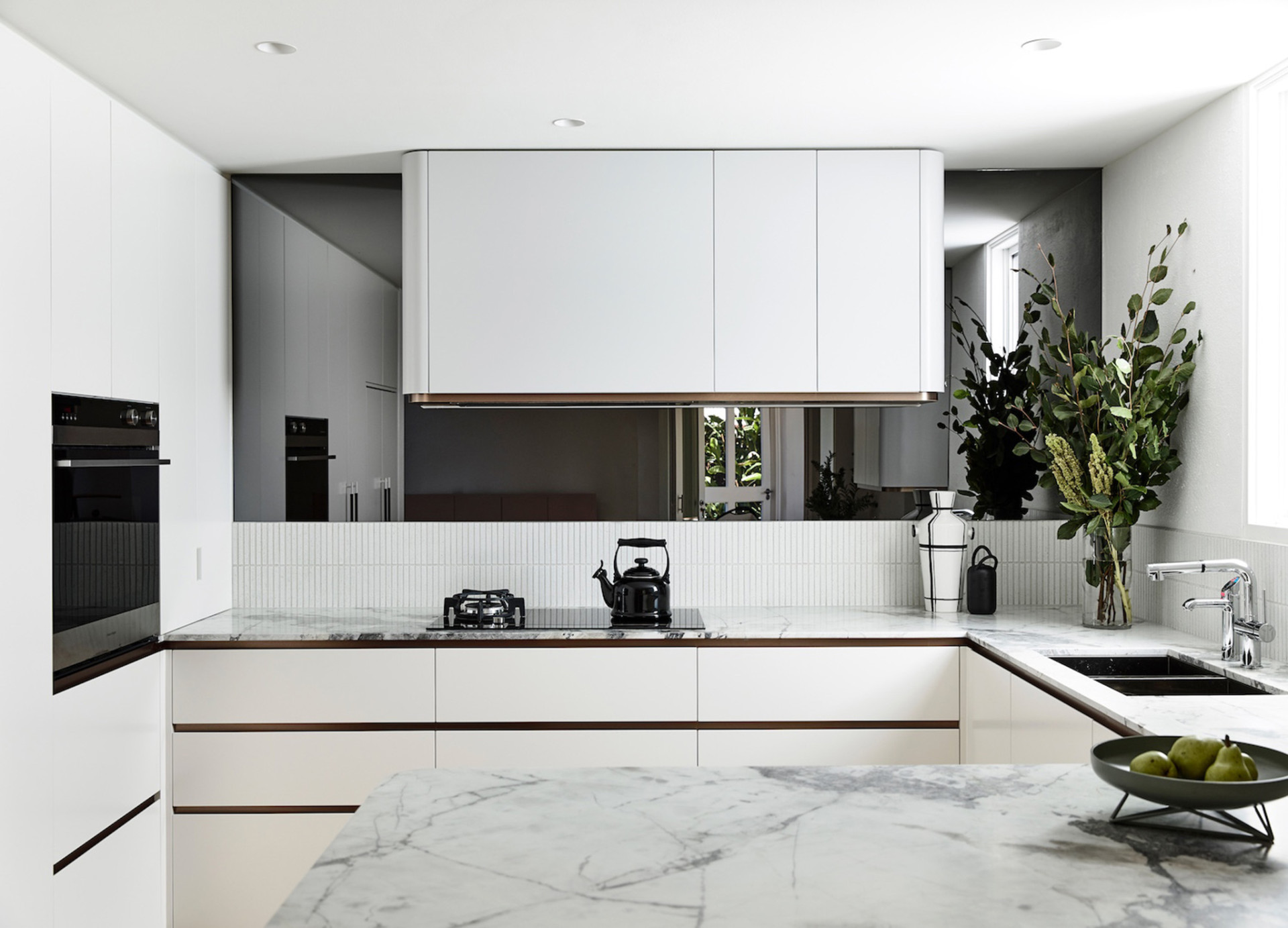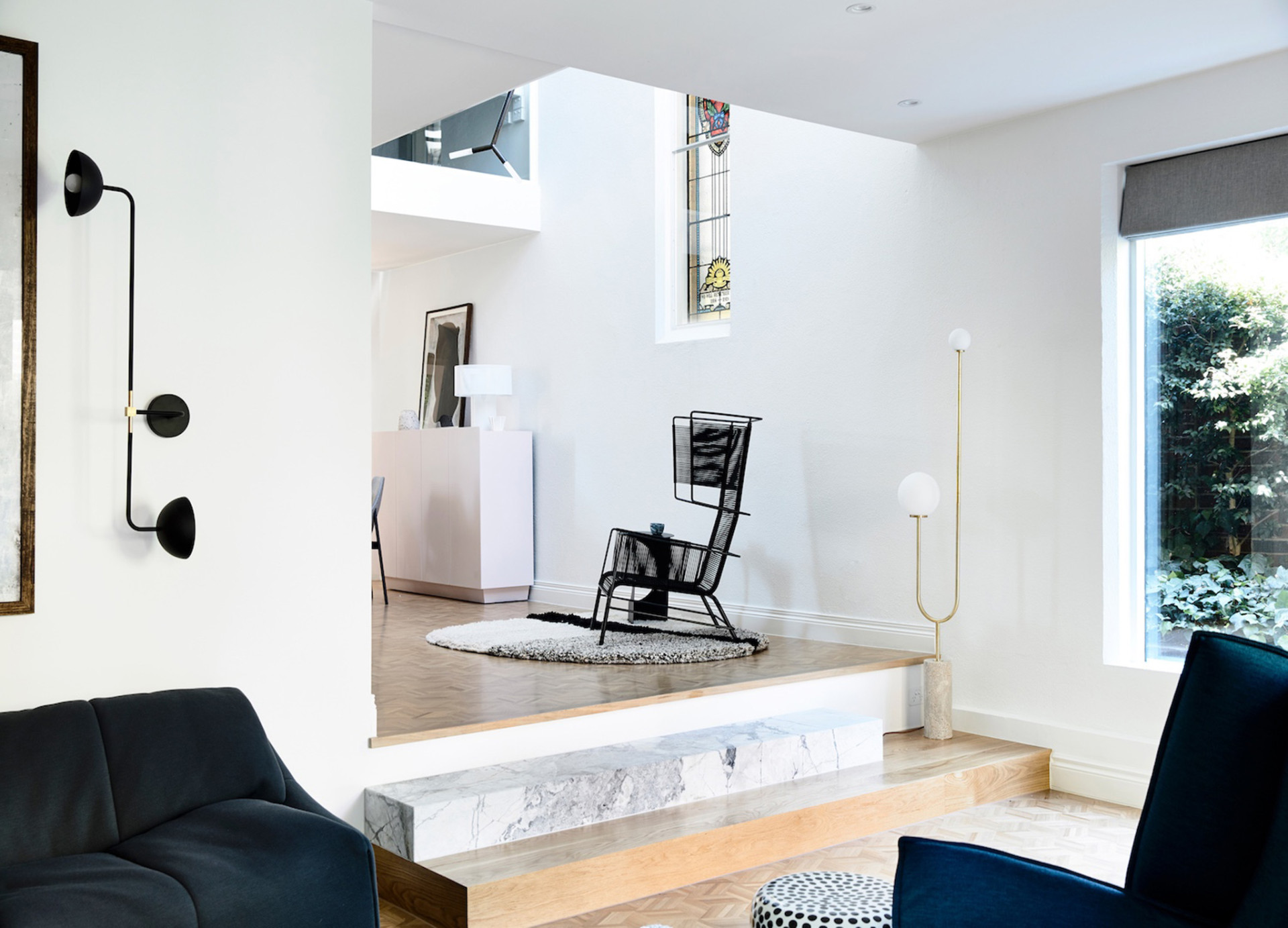 廚房中的定制細木工提供高度實用的功能,並帶有黃銅條細節和鏡面防濺板。毫無疑問,房屋傑出的設計特徵是細長的彩色馬賽克玻璃窗,溫暖的陽光穿透過精緻的馬賽克窗影響著每個空間。由於明亮清透的自然光線是不可少的要素,因此除了三樓的閒置空間和書房中白色的鋼製樞軸窗戶外,樓上臥室還增加了天窗。