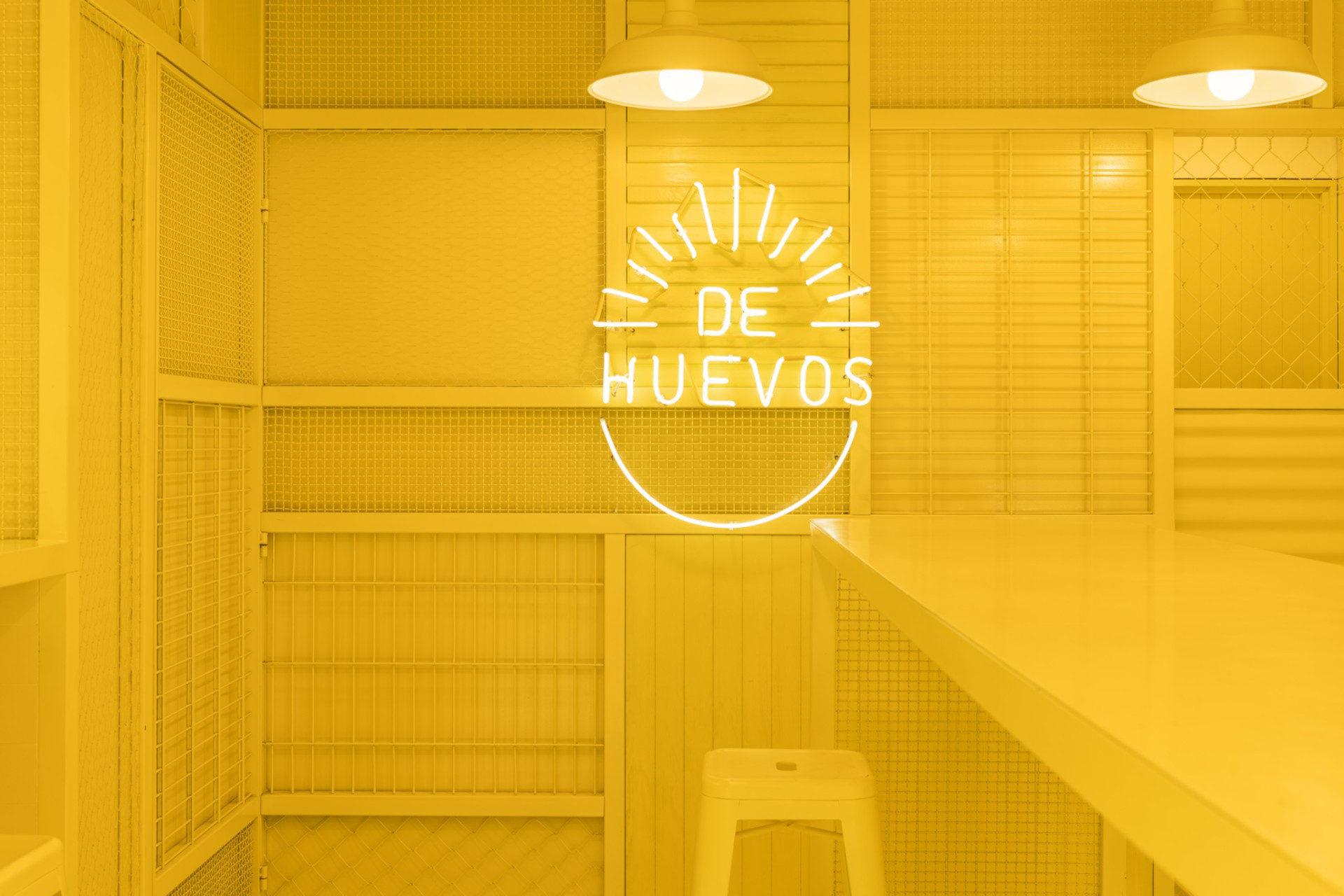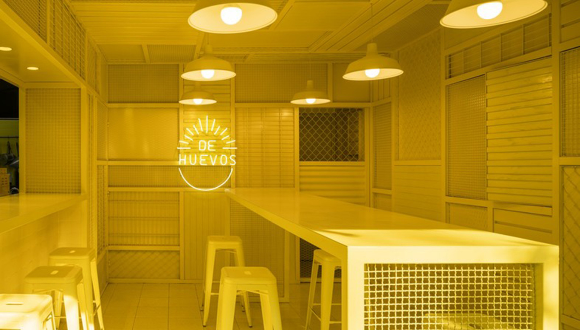 Cadena說到,在一片灰濛濛的城市景觀中,黃色非常的顯眼,使用這樣的顏色除了可以吸引人們的目光並邀請路過的人們進來體驗店內美味且獨具一格的料理,更能讓人一眼就清楚這家店販售的產品:雞蛋及雞肉做成的墨式美食。此外,如此強烈的風格,也能讓這間連鎖餐廳輕易地移植近任何一座城市,並留下鮮明的痕跡。