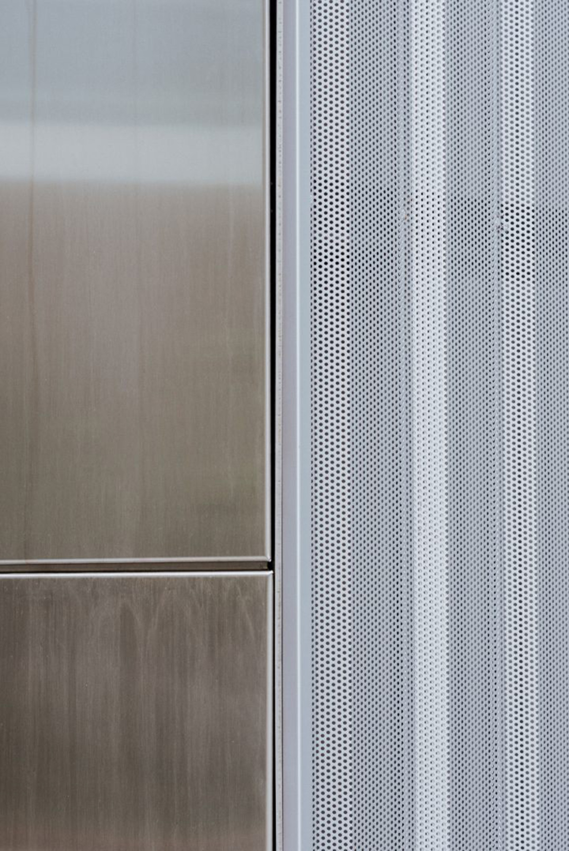 與周圍強烈的幾何建築相比,北格林威治雕塑屏風相對的更加淡入背景,顯得不那麼突出。然而,隨著太陽移動,穿孔波浪板完美的捕捉到日光,為該建築描繪出清晰俐落的輪廓。設計師精心設計,希望讓這個建築與相鄰的潮汐高架線性公園(The Tide elevated linear park)產生對話。該公園是Neiheiser Argyros建築事務所與Diller Scofidio + Renfro設計工作室共同合作的項目之一。透過兩個項目交織卻不相接、對比卻不產生衝突,設計師希望這兩座建築項目——有稜有角卻輕透的建築屏風,以及曲線流暢但強壯厚實的公園——能共舞出一首完美的曲目。